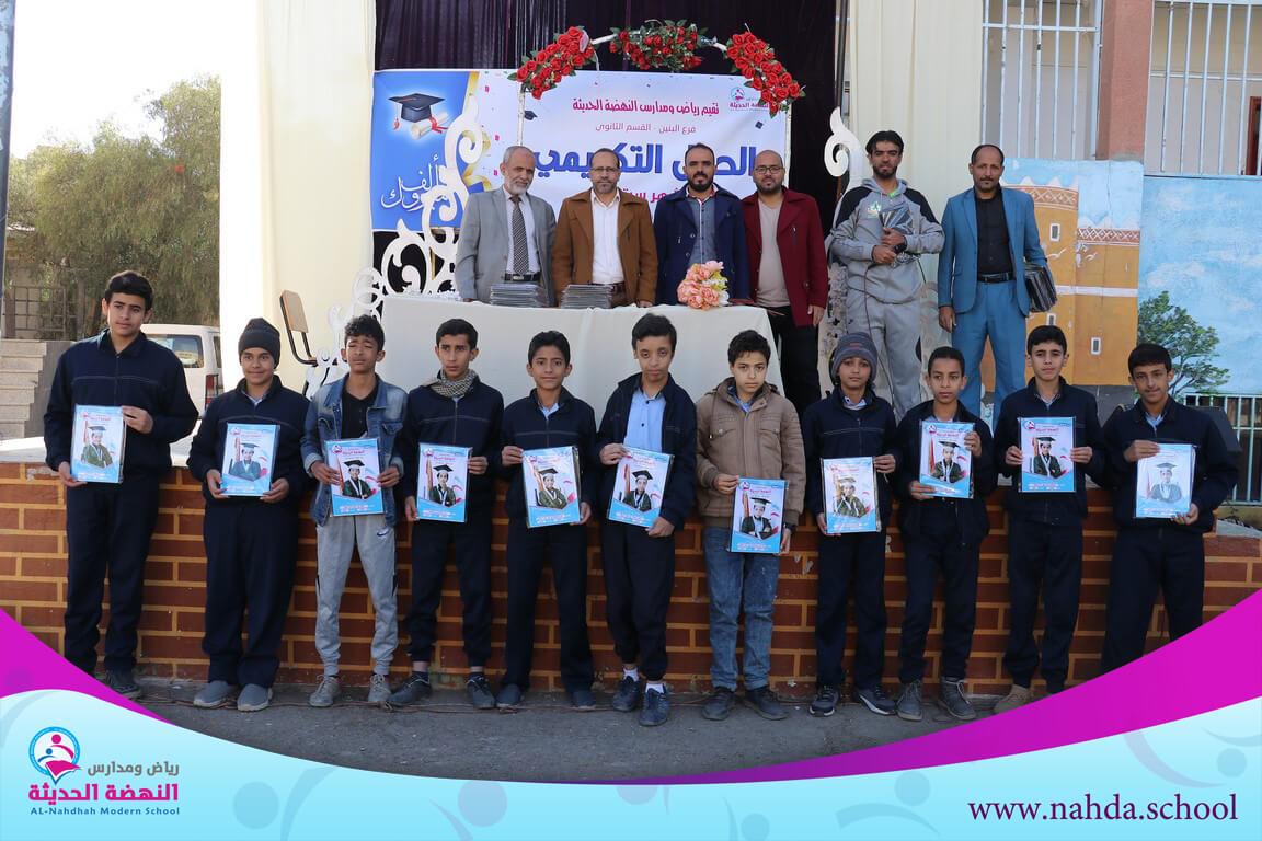 مع صباح هذا اليوم المشرق كرمت إدارة مدارس النهضة الحديثة طلابها الفائزين بالمركز الأول في المسابقة المنهجية على مستوى منطقة الثورة التعليمية للصف التاسع .